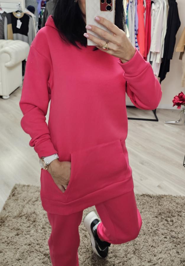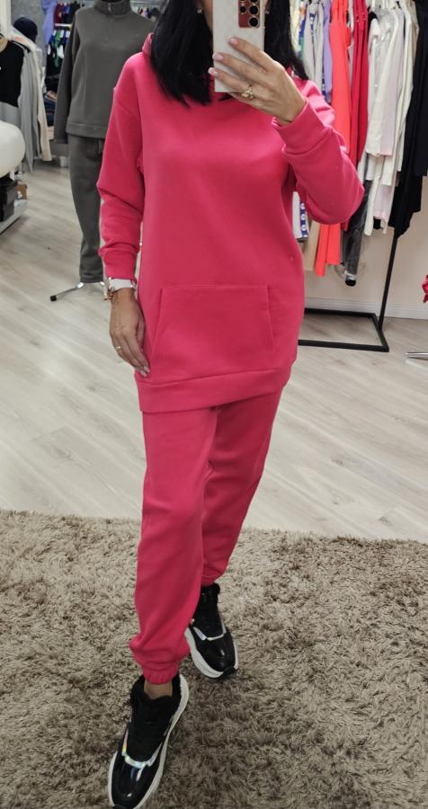 Тёплый на флисе костюм с капюшоном. Байка удлинённая с карманами. В Штанах есть карманы.